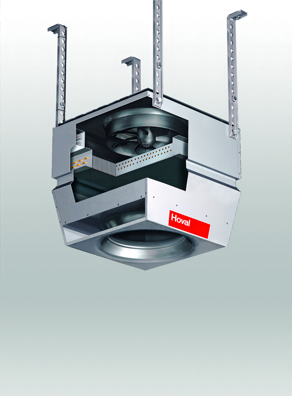 TopVent NHV吊装在屋顶下或壁挂式安装,通过加热盘管将室内空气加热后经喷口直接送出。TopVent NHV不能调节送风角度,因此只适用于对舒适度要求不高的环境。(例如:高架仓库)